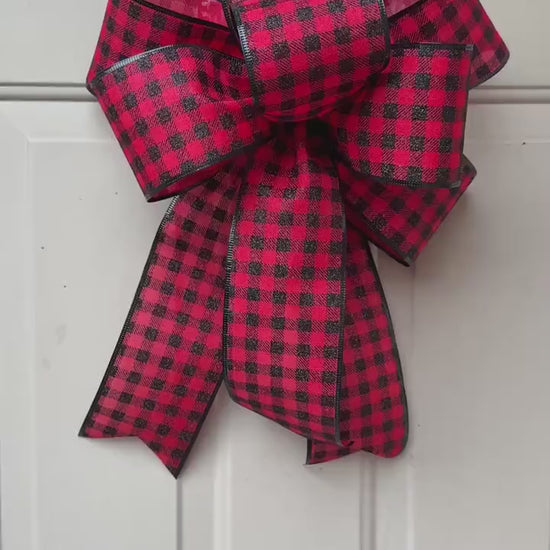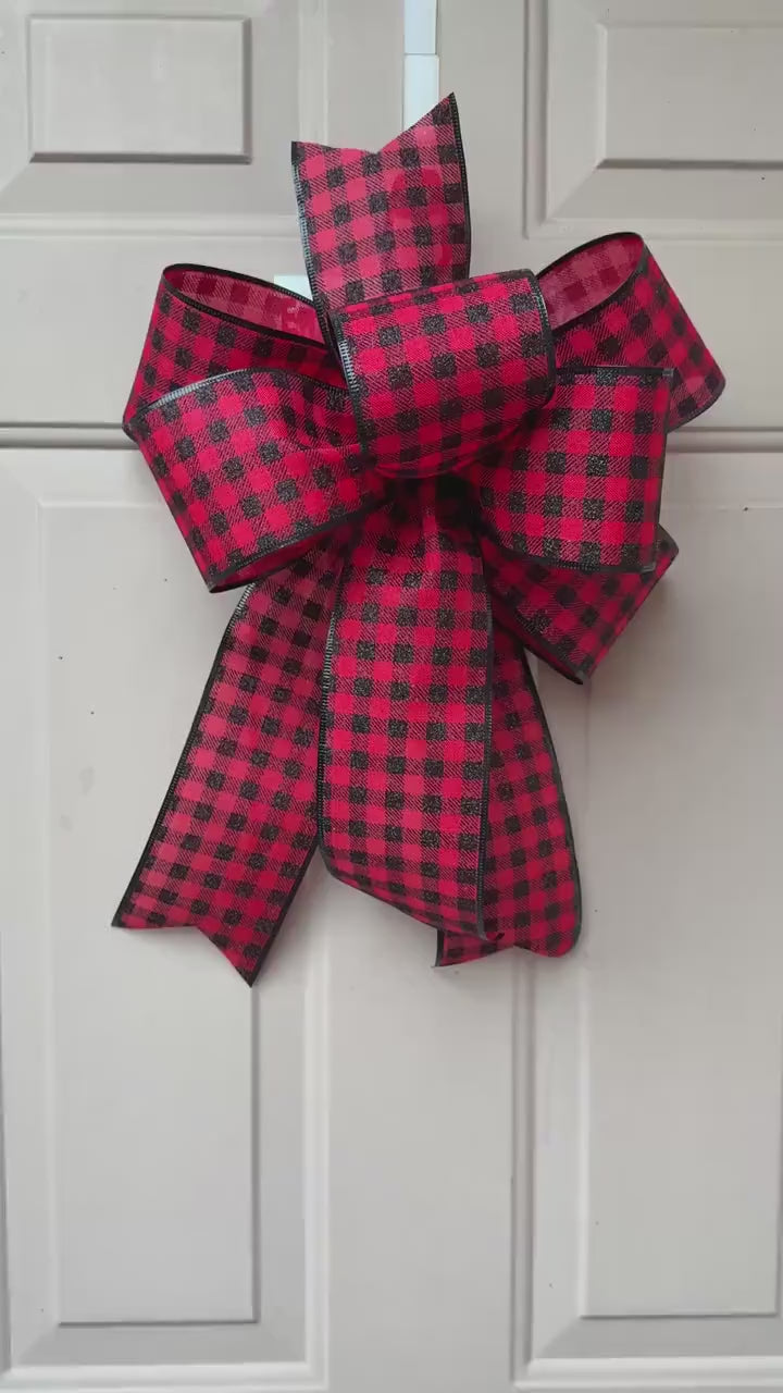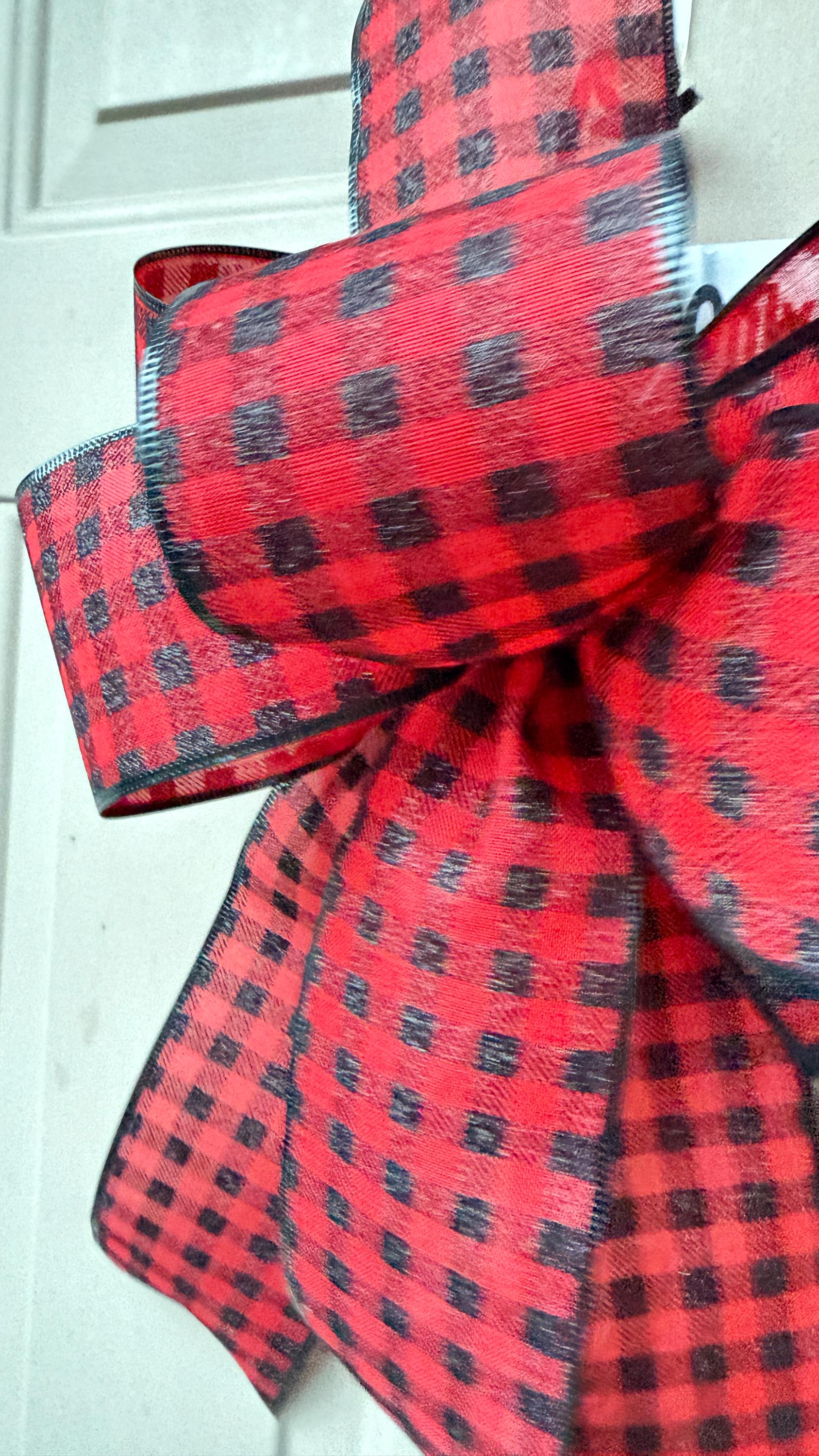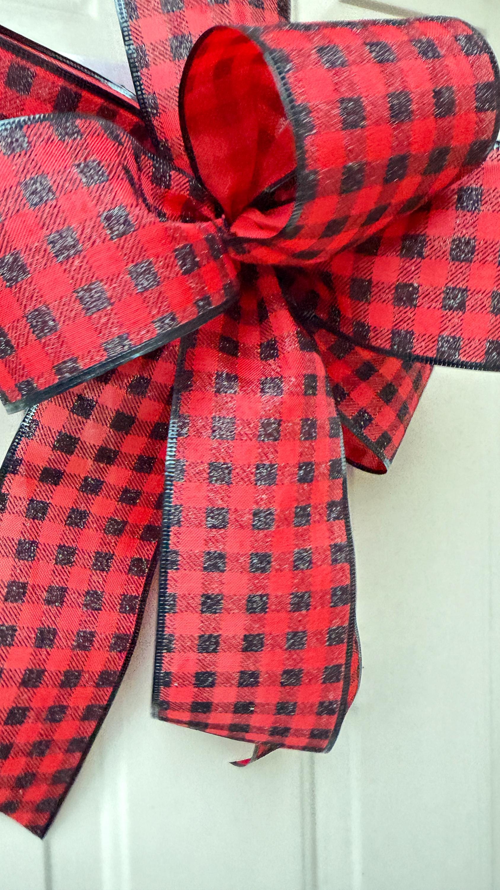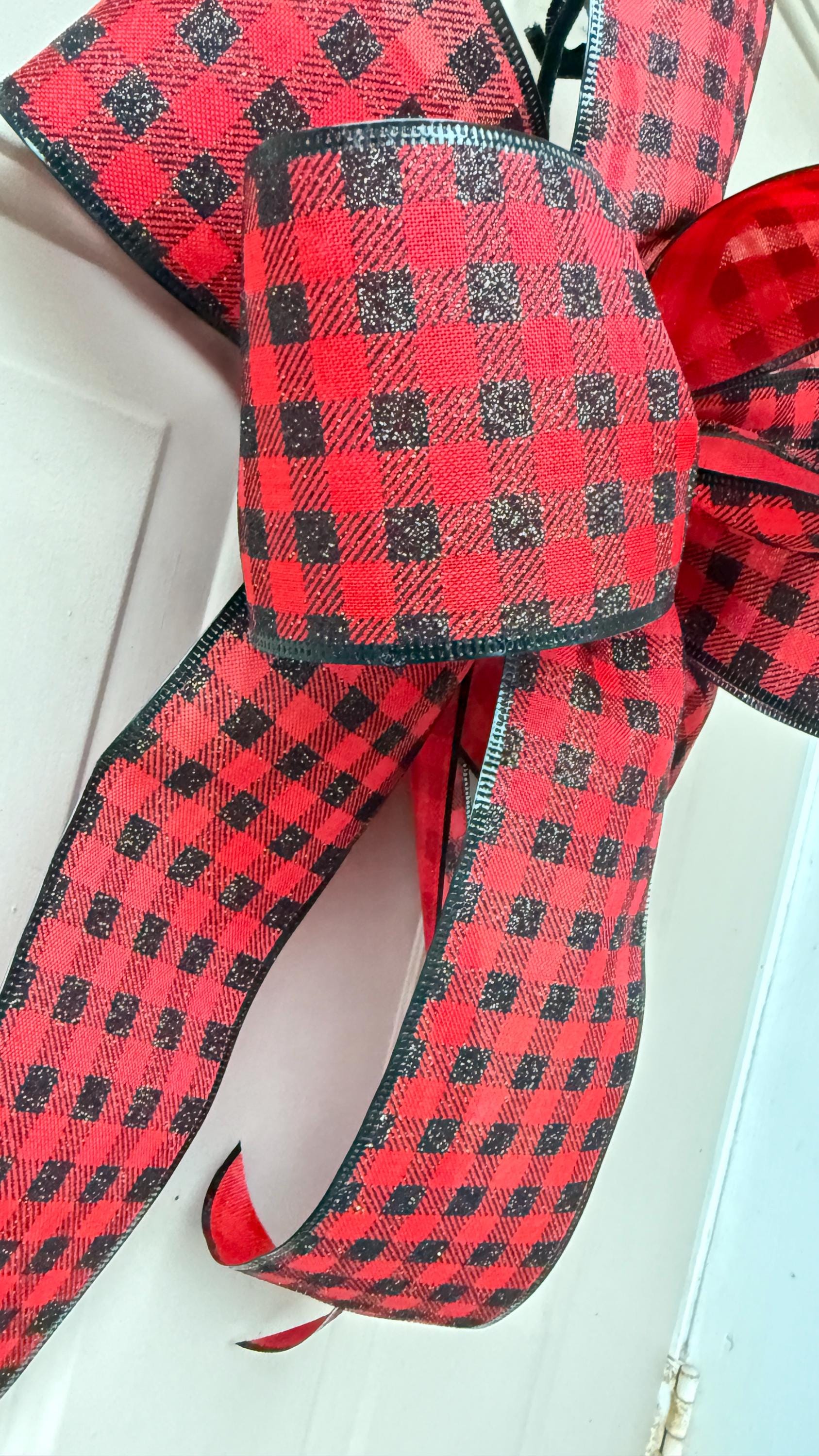 Buffalo Plaid Christmas Bow, Red Black Check, Farmhouse Wreath Decor